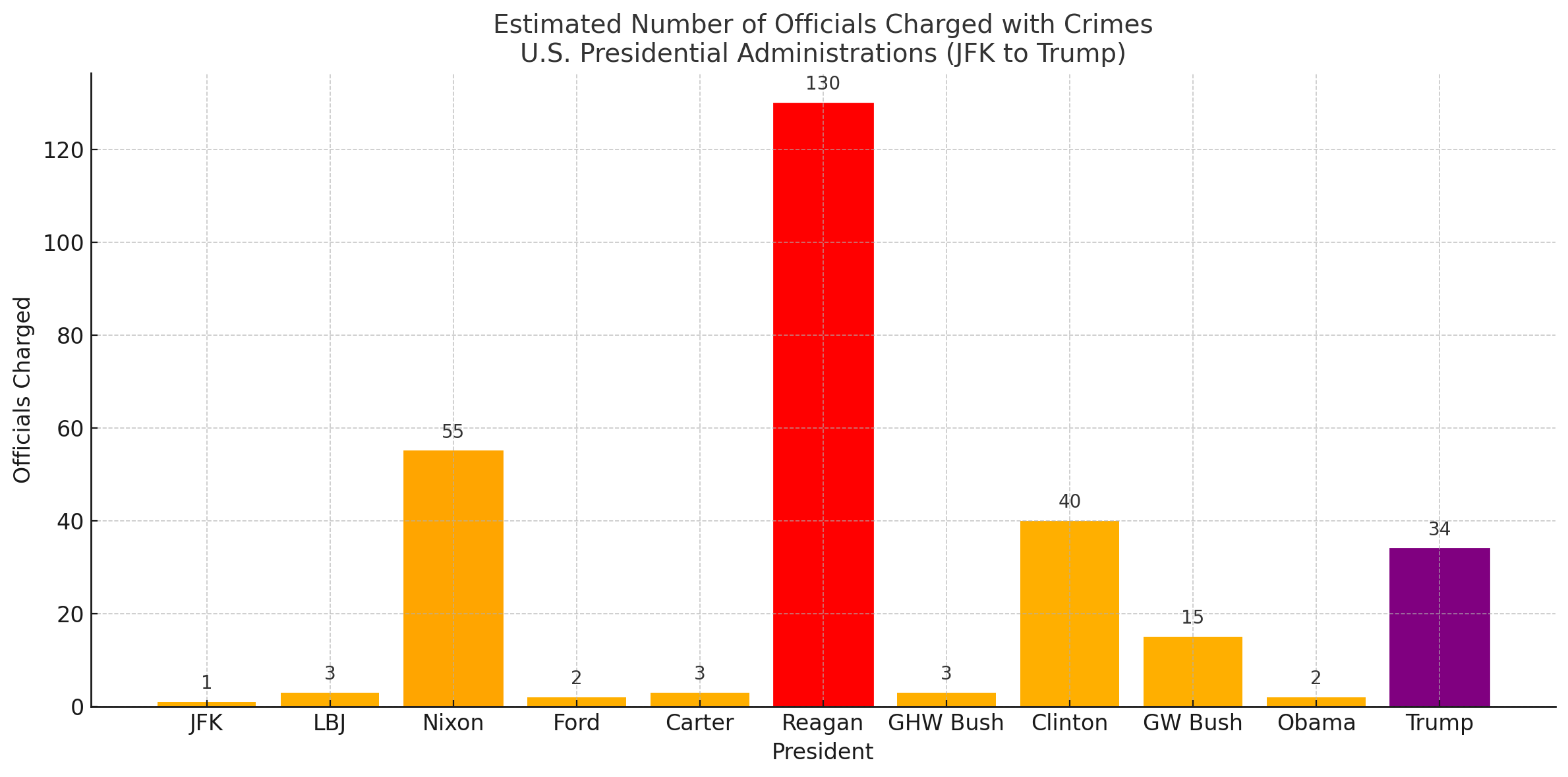Over 130 Reagan administration officials were either formally investigated, indicted, or convicted on charges ranging from perjury and obstruction of justice to fraud and conspiracy. The most well-known of these was the Iran-Contra affair - where Reagan looked the American people down the barrell of the television camera lens and lied to their faces - but there were several other scandals involving fraud, corruption, and abuse of power. Brooks may choose to forget the names, but we do not: Anne Gorsuch Burford, James Watt, Michael Deaver, Lyn Nofziger, Ed Meese, John Poindexter (convicted, later reversed on appeal), Oliver North. These and many others are the names we would have up on the wall of National Memorial of Fraud, Corruption, and Abuse of Power if we built one for the national mall.